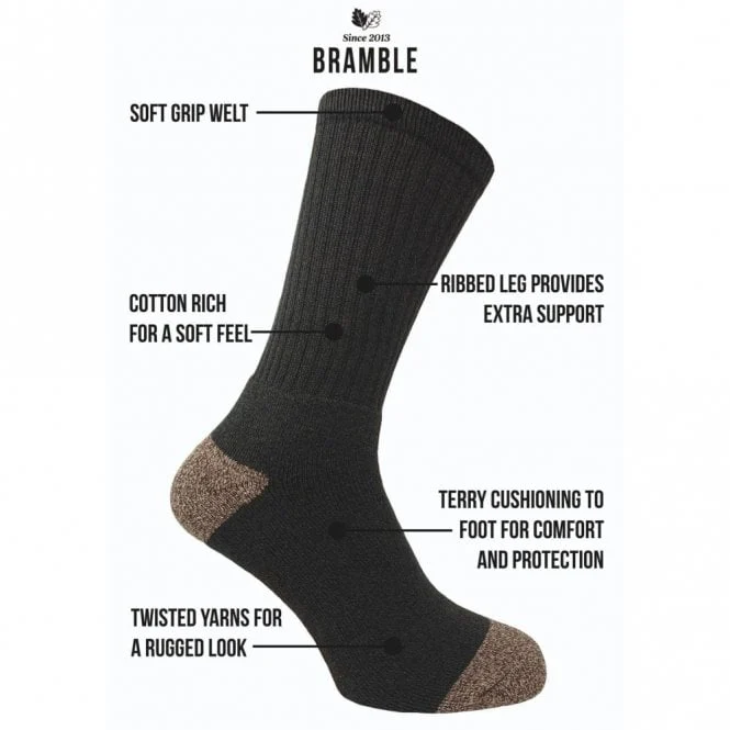 Bramble Mens Docks All Terrain Socks 3PK Khaki 6-11